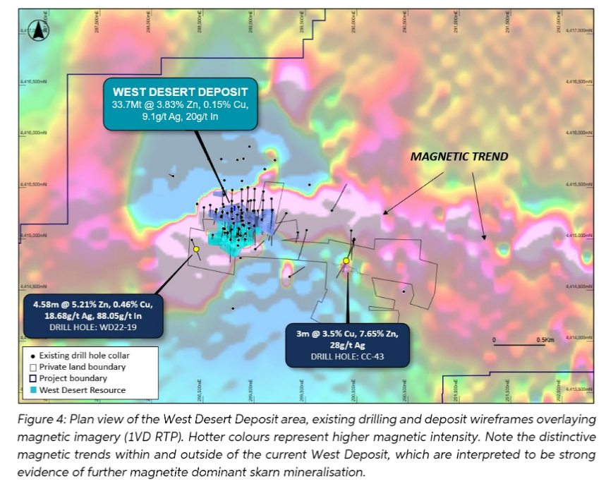 77,3 g/t Ga sind in Magnetit-Skarn und CRD in West Desert, in