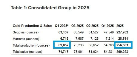 • Q3 gold sales of 73,001 oz, a 20% increase over Q2 2025.