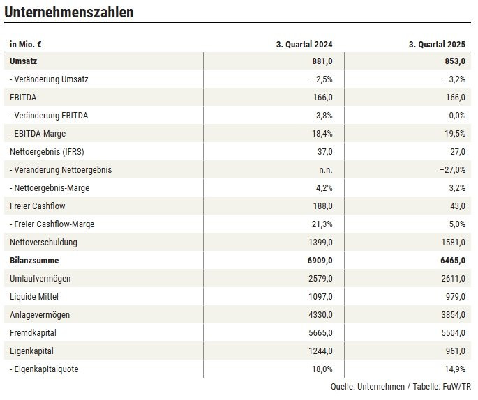 Für das laufende Quartal erwartet CFO Rainer Irle einen Umsatz zwischen 790 bis 890 Mio. € (Vorjahr: 882 Mio.) sowie eine Ebitda-Marge zwischen 16 und 19%. Analysten hatten jeweils mit mehr gerechnet.