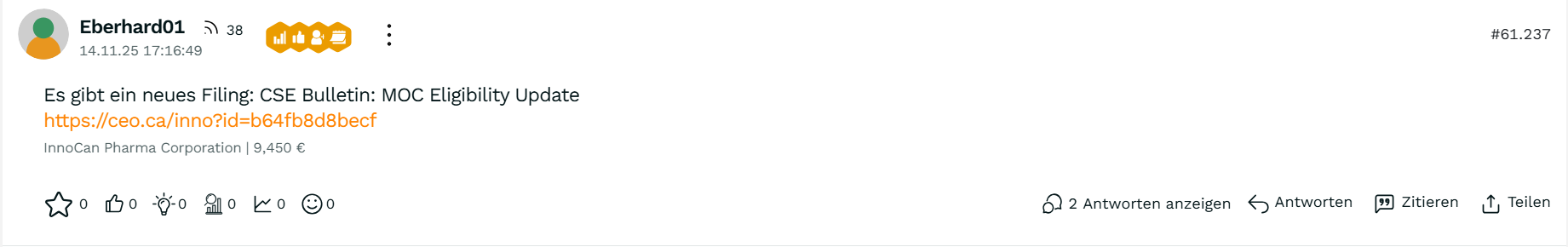 Die erste offizielle Ankündigung (IRW) war am 24.07.25: "Innocan Pharma gibt die öffentliche Einreichung der Registrierungserklärung für den geplanten Börsengang in den USA bekannt"