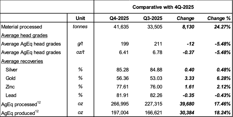 Die Produktionszahlen für das vierte Quartal sind jetzt veröffentlicht. Es gibt einen Anstieg von über 17% bei den produzierten mengen und einen Anstrieg der Erlöse pro Silberäquivalent von 40%. Damit könnte man einen Gewinn - der noch zu ermitteln ist - der noch um 1 Mio USD über diese Abschätzung liegt - ableiten: