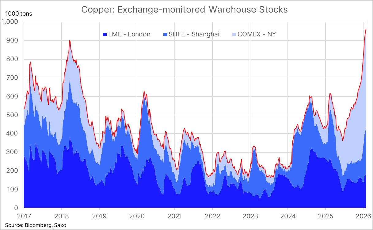 : Im Vorfeld der Nachfrageflaute zum chinesischen Neujahr steigen die von den Börsen überwachten Lagerbestände weiter stark an und erreichen mit einem Plus von 32,1 kt ein neues Mehrjahreshoch von 964 kt. An allen drei Börsen ist ein Aufbau von Lagerbeständen zu verzeichnen, angeführt von Shanghai (+15,9 kt), LME (+8,3 kt) und Comex (7,9 kt).