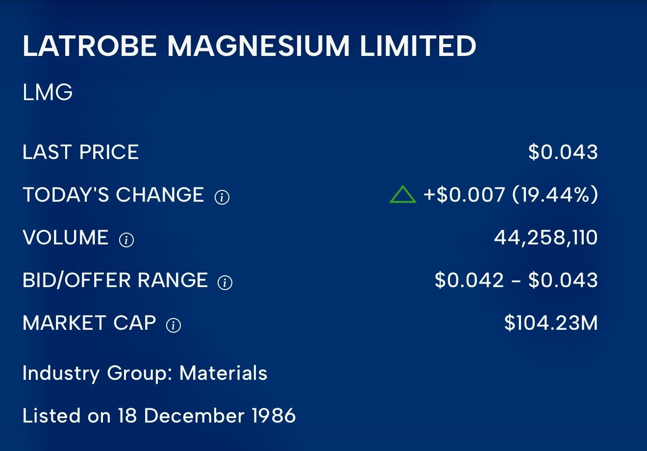 Das denkt die wallstreetONLINE Community über Latrobe Magnesium. Was ist Ihre Meinung? Diskutieren Sie gerne gleich mit!