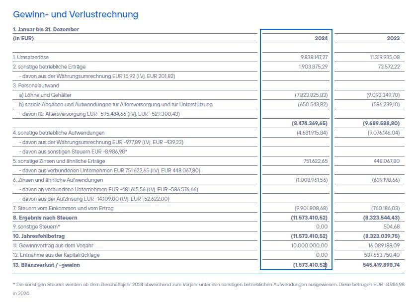 Aber wenn die Zahlen aus der Gewinn-/Verlustrechnungen(Seite 05 des Abschlussberichtes) stimmen, hätten die im Geschäftsjahr nur knapp 10 Mio Umsatzerlöse. Das kann ja auch nicht sein, oder? Vielleicht kann jemand etwas Licht ins Dunkel bringen.