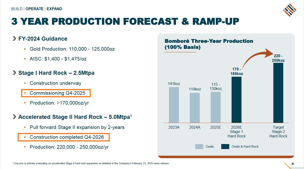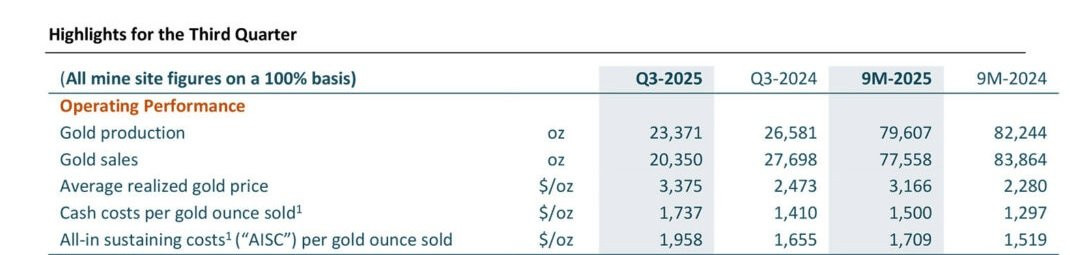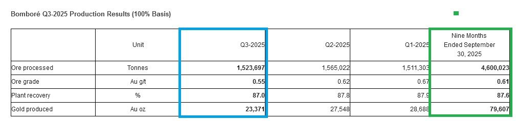 "Patrick Downey, Präsident und CEO, erklärte: „Die Produktion im dritten Quartal lag leicht unter dem Plan, was auf für die Jahreszeit ungewöhnlich lange Niederschlagsereignisse zurückzuführen war, die den Zugang zum Bergbau einschränkten und dazu führten, dass ein Teil des Mühlenfutters aus Lagerbeständen mit geringerem Gehalt stammte. Wie in den Vorjahren erwartet das Unternehmen ein starkes viertes Quartal mit verbessertem Zugang zum Bergbau und insgesamt höheren Gehalten nach dem Ende der Regenzeit. Die Goldproduktion liegt bereits im Oktober über Plan, und mit der bevorstehenden Aufnahme der Goldproduktion aus der Hartgesteinsanlage bleibt das Unternehmen auf Kurs in einem Umfeld steigender Goldpreise seine Produktionsprognose von 115.000 bis 130.000 Unzen für 2025 zu erreichen."