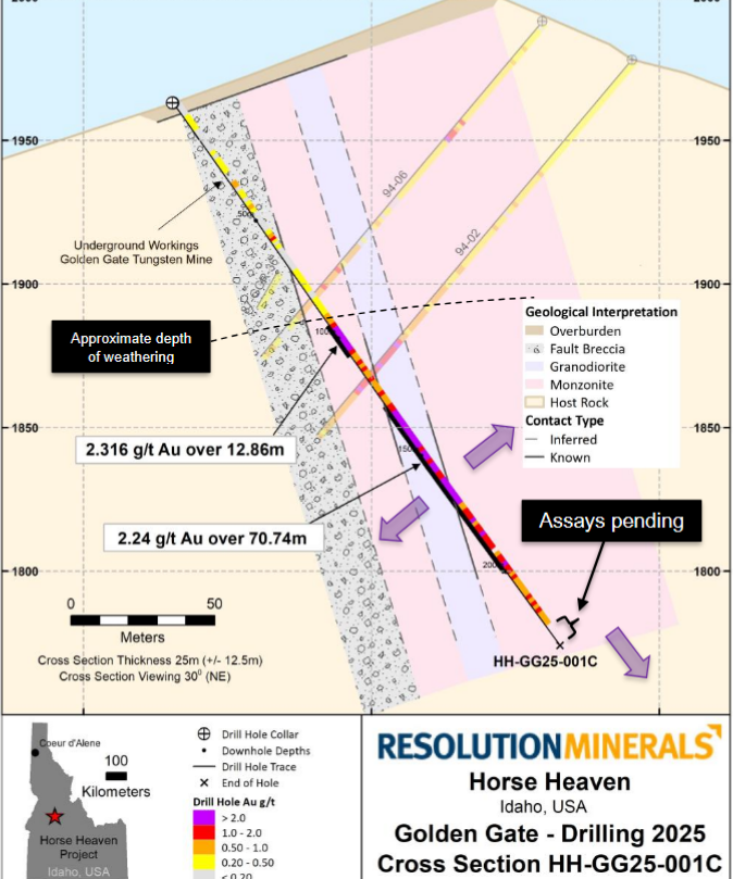 HH-GG25-001C: 197.5m @ 1.26 g/t gold from 34.0m (open ended);