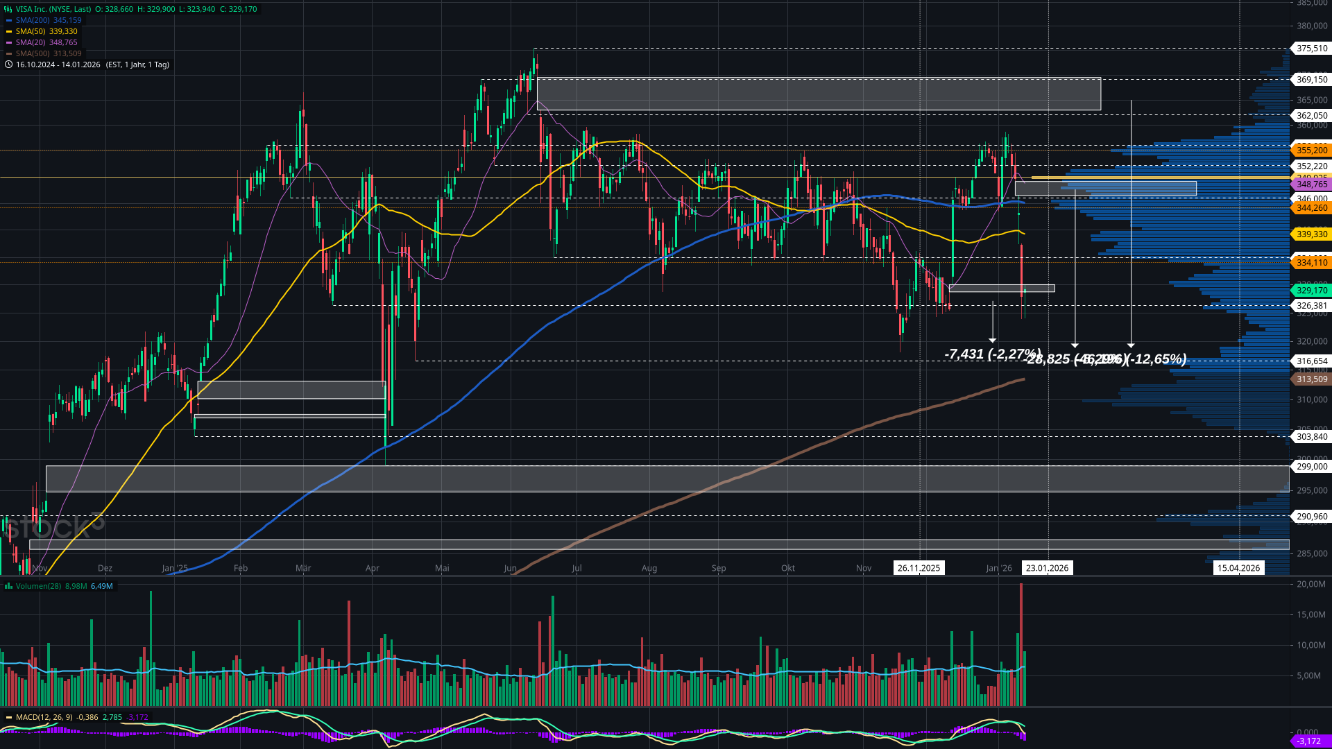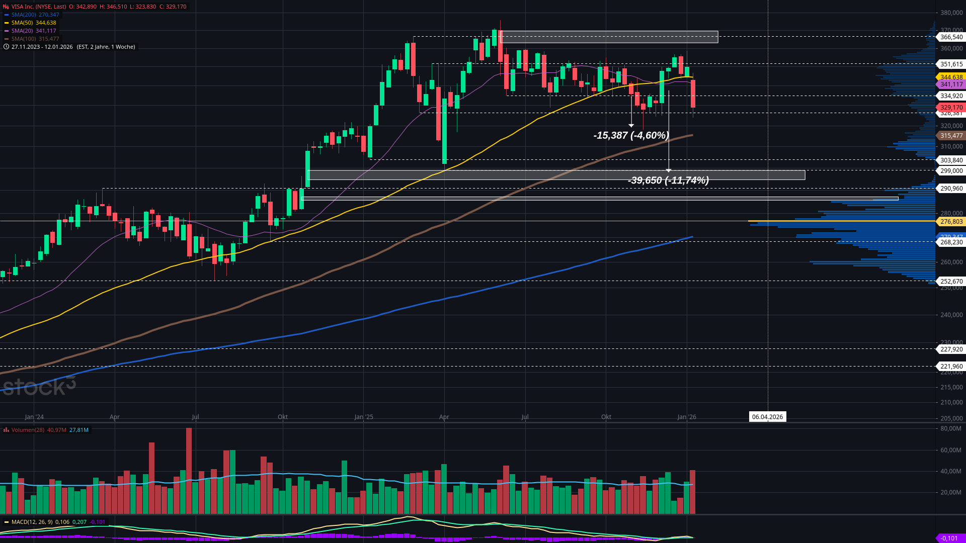 VISA, was mach ma mit VISA, GAP´s müssen nicht zwingend geschlossen werden, aber die gestrige Tageskerze hat auch Signalwirkung und würde die Umkehr mit einem Close per Tag über TH einleiten.