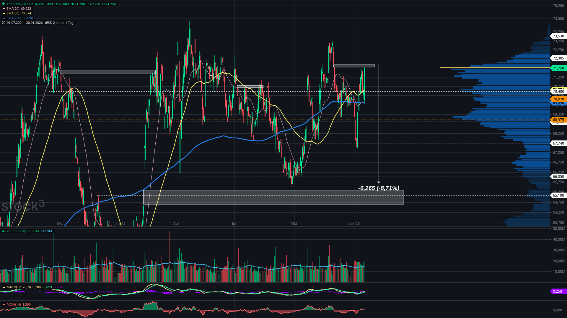 Coca-Cola, wir erinnern uns an den NASDAQ, entweder die schließen das GAP oder nicht. Verlassen wurde die Range noch nicht.
