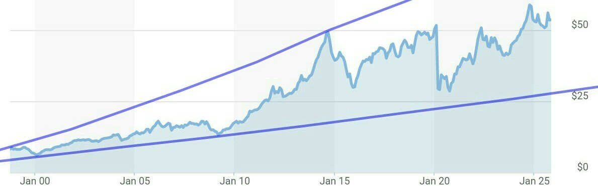 Solche Charts mag ich, unaufgeregt und mit einer moderat nach oben geneigten Trend-Unterkante.