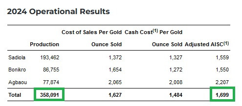 💎 FY25 Ausblick: Produktion 375-400 koz Gold zu AISC 1690-1790$/oz