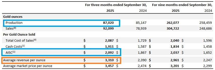 "Die vorläufigen AISC-Margen stiegen von 755 USD pro verkaufter Unze Gold im zweiten Quartal auf etwa 1.350 USD pro verkaufter Unze Gold im dritten Quartal, was einem Anstieg von fast 80 % in diesem Zeitraum entspricht."