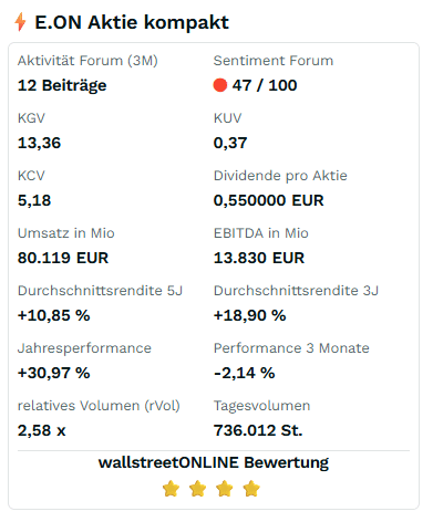 Ich habe E.ON Aktien am 12.11.25 für 15,66€ gekauft. Jetzt steht die Aktie bei 15,42€.