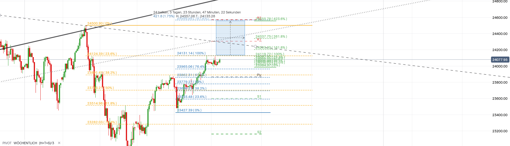 Tendenz: oberhalb von 24100 aufwärts, unter 24000 Rücklaufrisiko