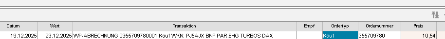 Die Order für den 19.12.2025: