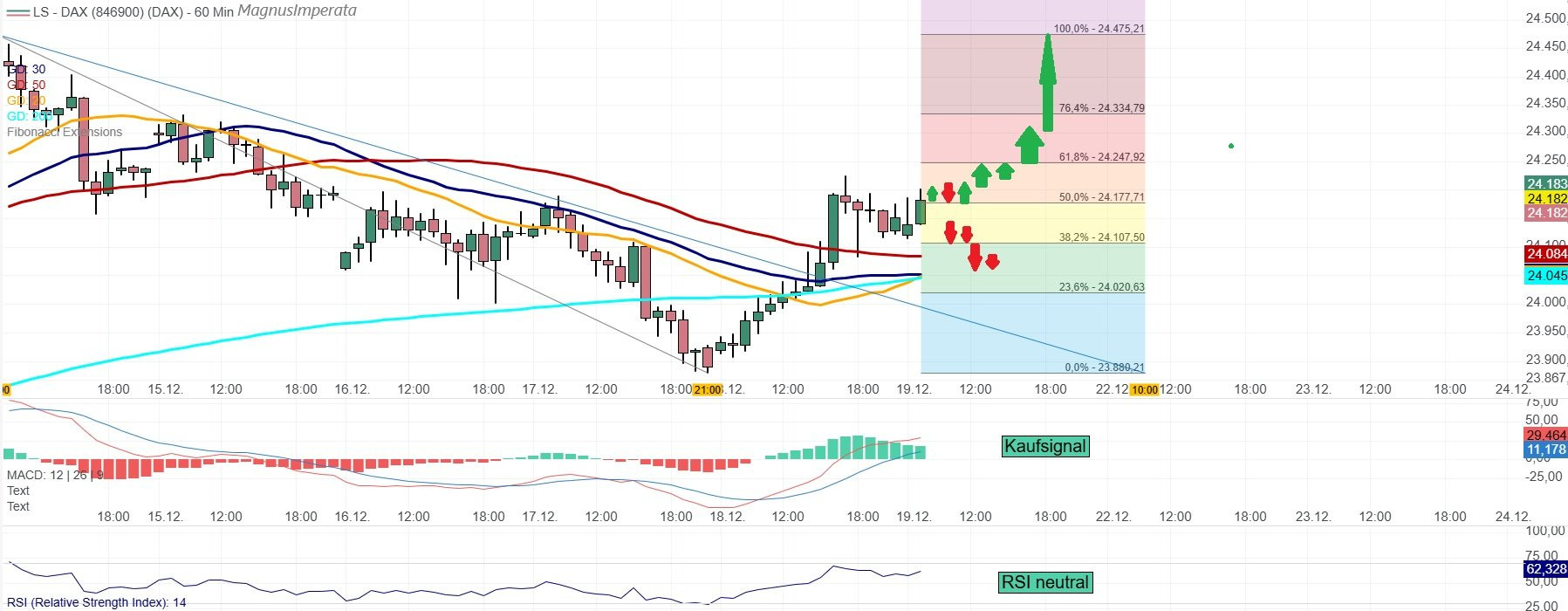 Tendenz: aufwärts oberhalb von 24200, unter 24000 weiter abwärts