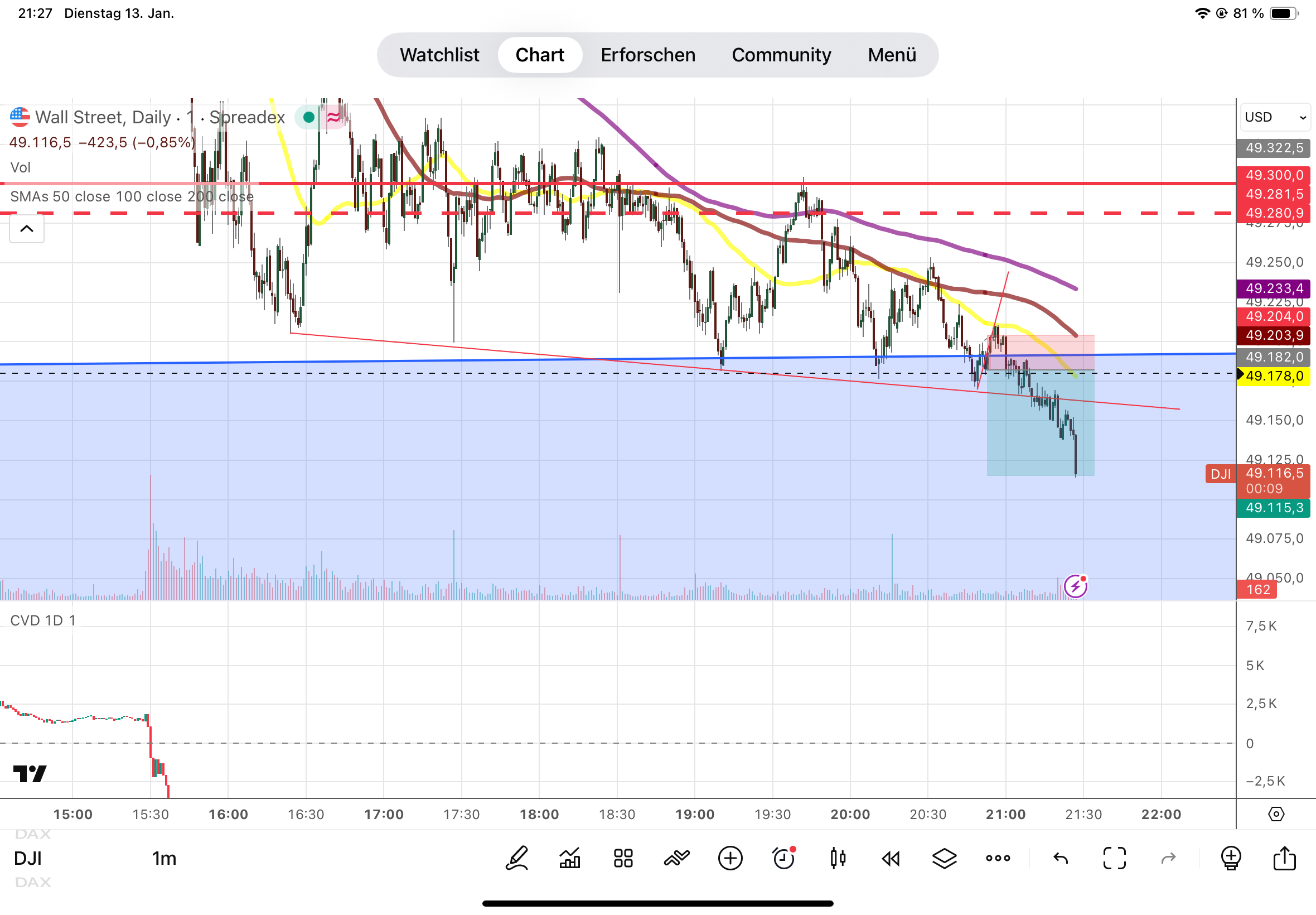 Dow ist eingetaucht, geht aber nicht so richtig unter. Krieg ich die Kriese , geht aber raus und der erste Schub nach unten folgt😤
