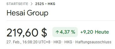 Heute legt Hesai an der NASDAQ bisher über 6 % zu bei bis jetzt 2 Millionen gehandelte Aktien. Der Deal mit Nvidia hat die Sichtbarkeit der bisher recht unbekannten Firma stark erhöht!