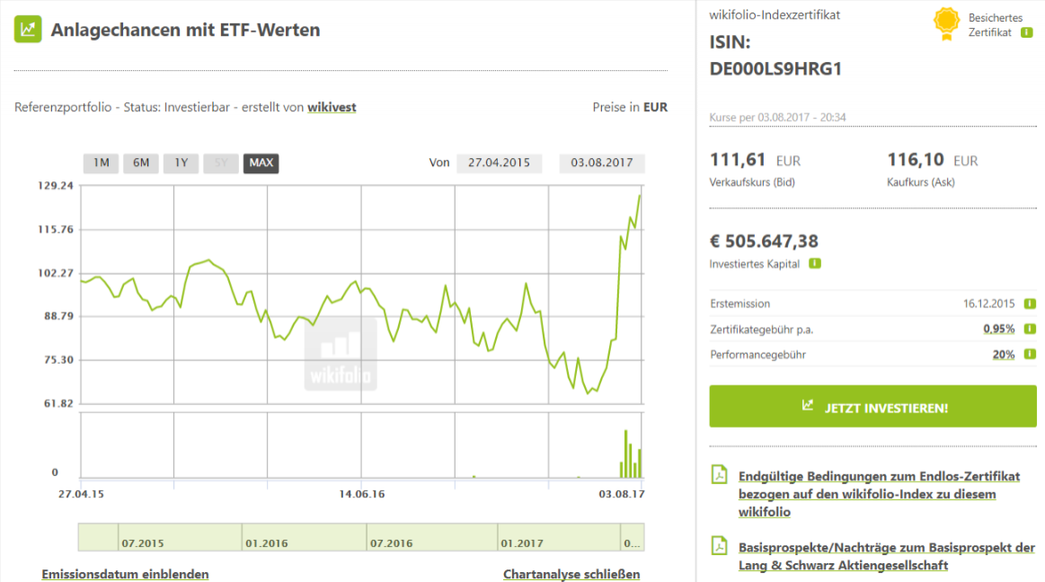Das Wikifolio wurde am 01.09.2015 erstellt und das Erstemissionsdatum war am 09.11.2016.