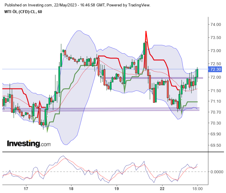 Das WTI Rohoel hat die A,B,C erst bei USD 75,76 abgearbeitet. Also da fehlt noch gut USD 1,50.