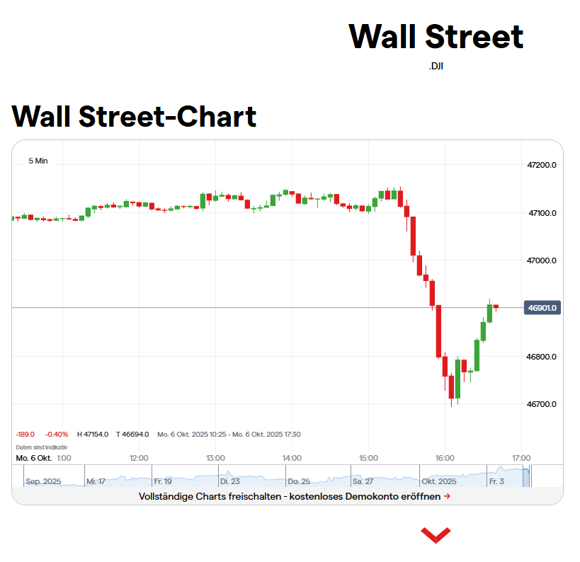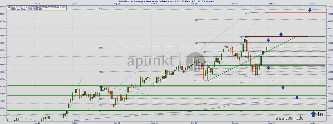 Der Dow Jones zog ohne weiteres Testen des Vorwochentiefs weiter nach oben und konsolidierte erst etwas, als er die 47.000er Marke überwunden hatte.
