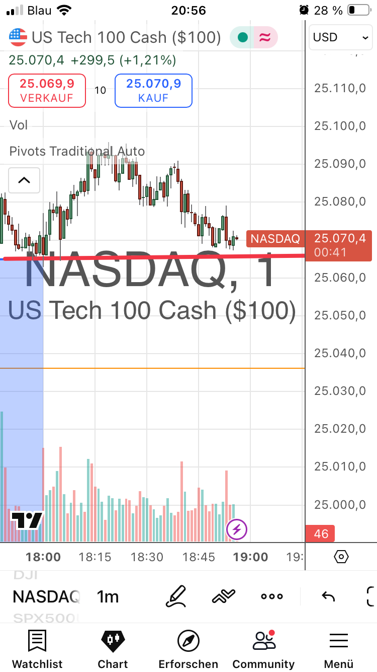 Habe aktuell 25100-25150 Marken auf dem Schirm 24700 sieht bei mir so ziemlich nach Durchmarsch bei dem Up-Szenario. Morgen werden wir schlauer sein
