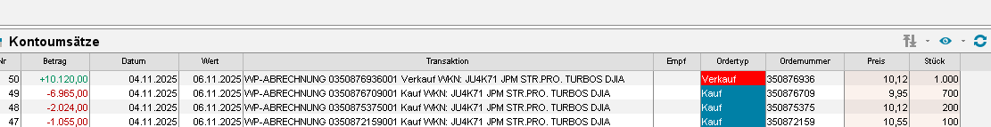 Die Order für den 04.11.2025: