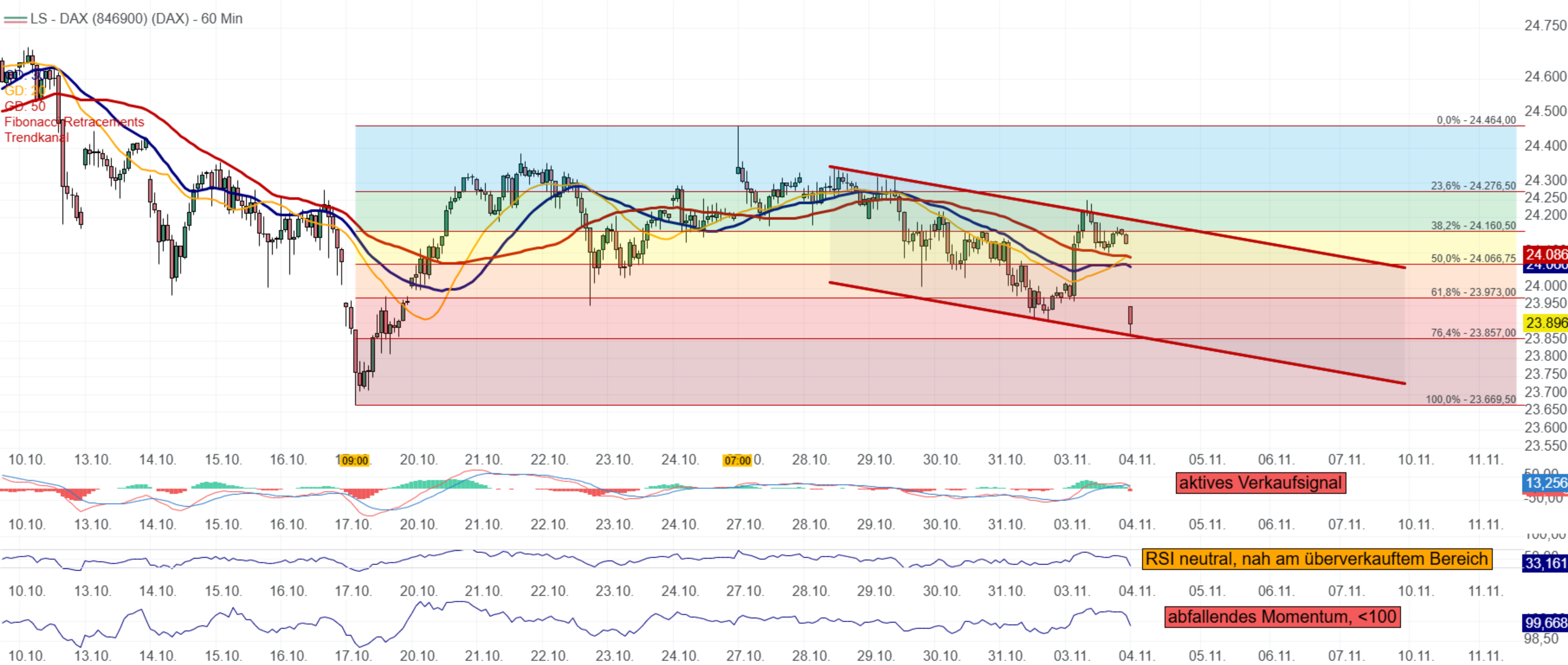 Tendenz: oberhalb von 24100 Erholungsfortsetzung, unter 23950 abwärts