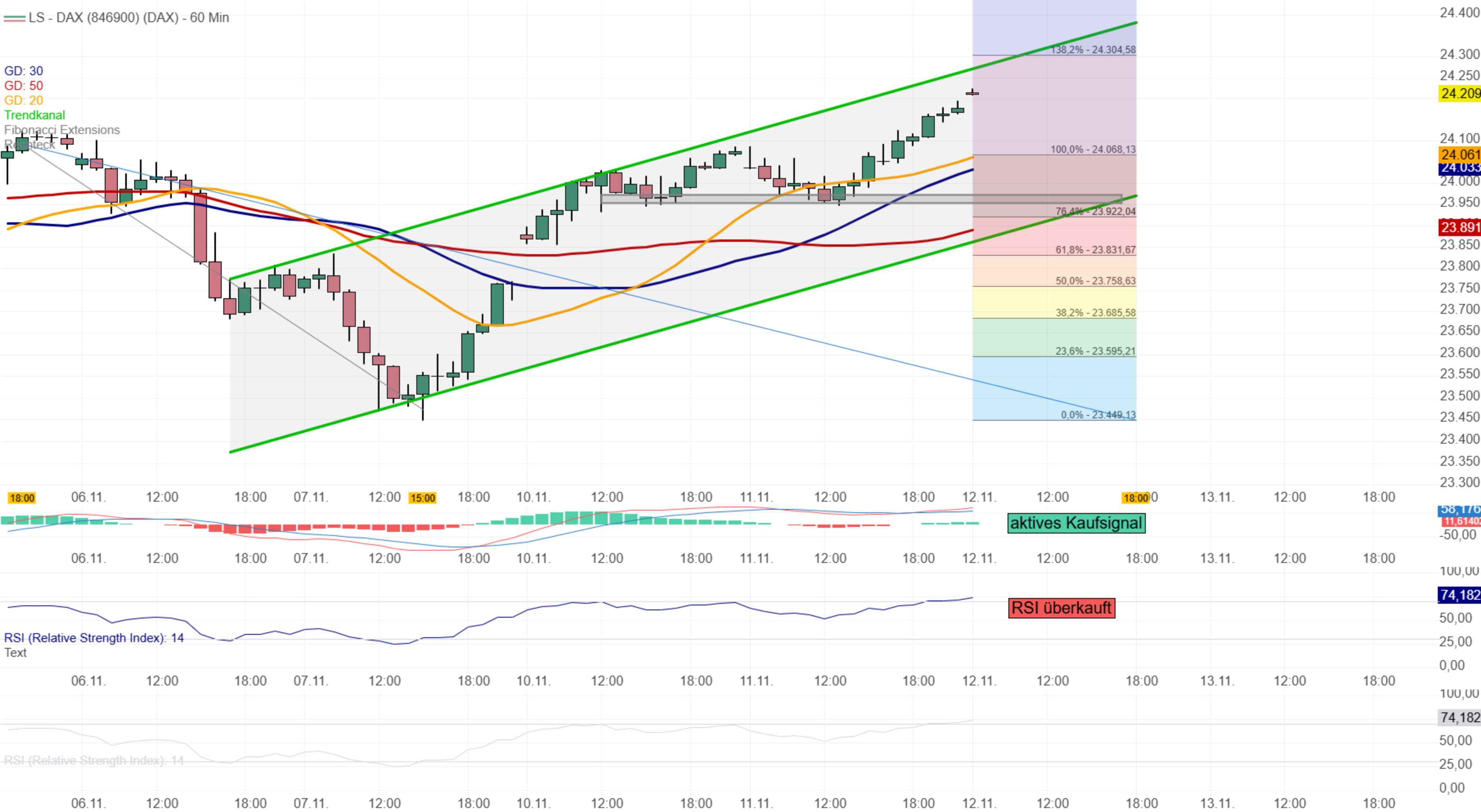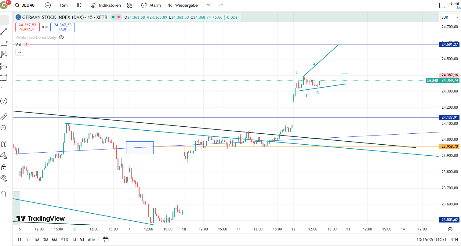 Tendenz: oberhalb von 24100 weiter in der Erholung, unter 24000 abwärts