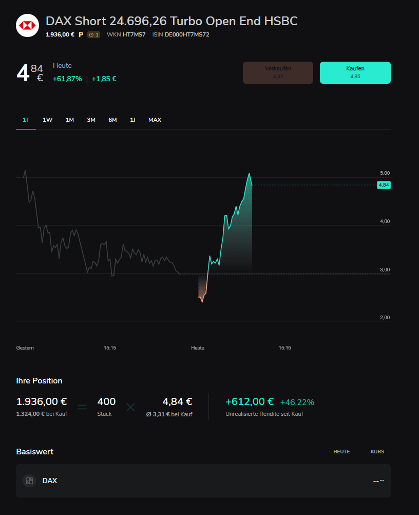 in ei 24137 Short mit einer Position gegangen und siehe da: