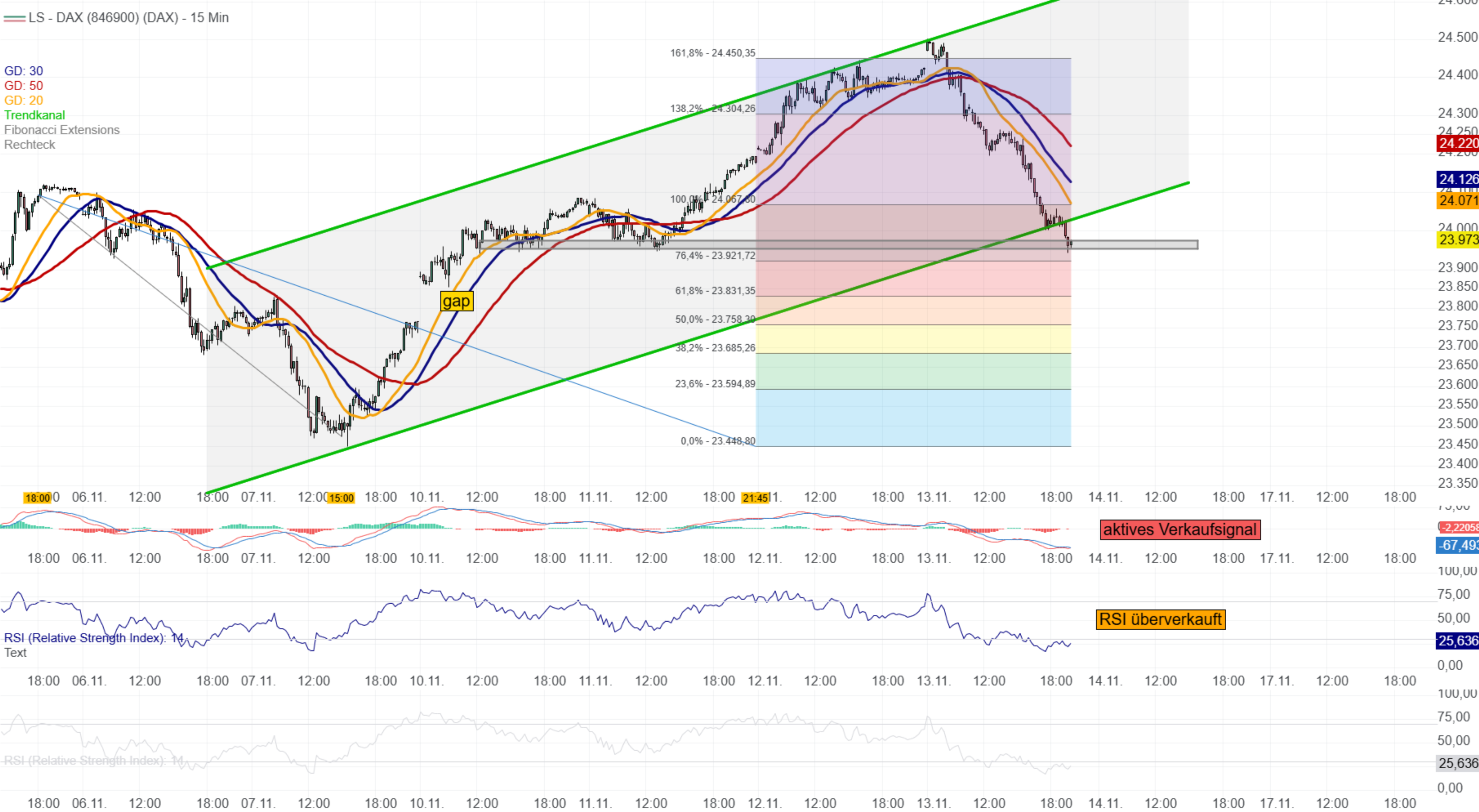 Tendenz: oberhalb von 24100 weiter in der Erholung, unter 24000 abwärts
