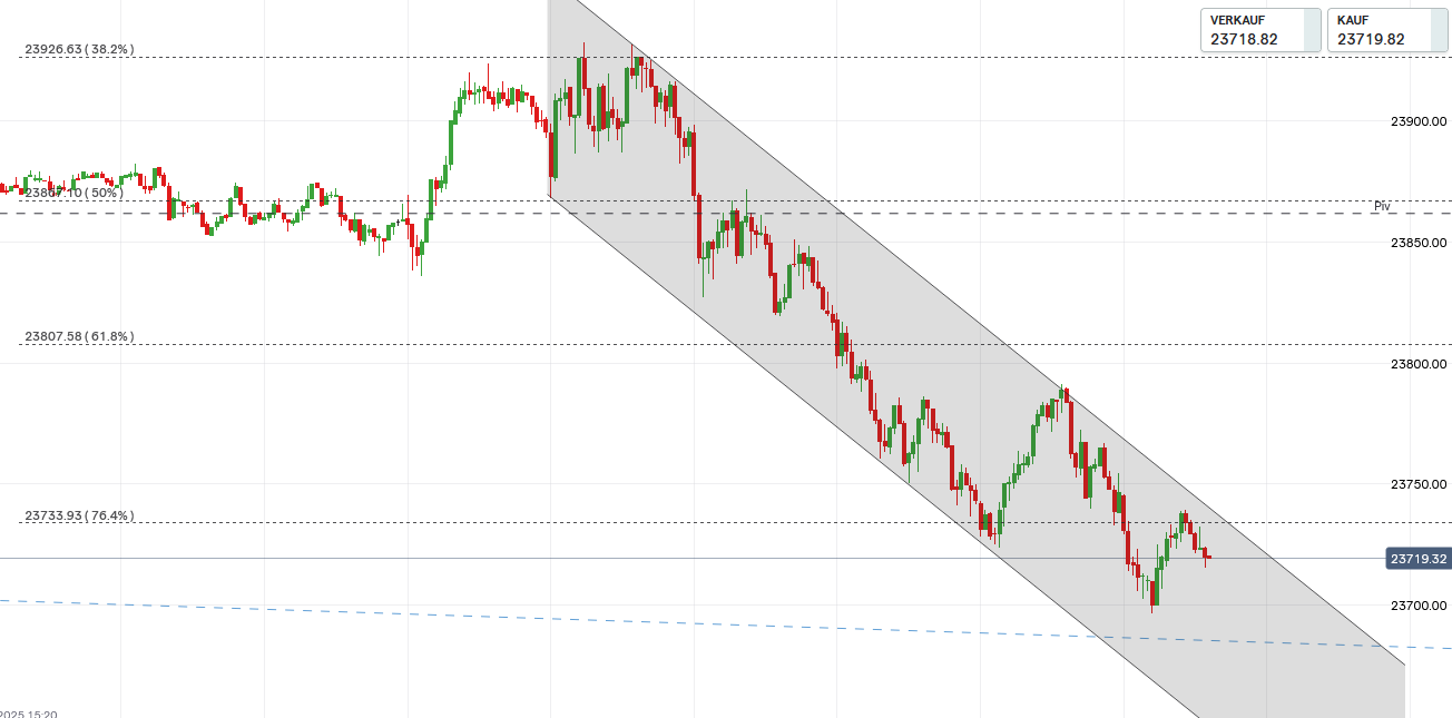 Das Vorwochentief und das Tief vom 14.10.25 bilden eine neue kurzfristige Aufwärtstrendlinie, die am Freitag erfolgreich getestet wurde.