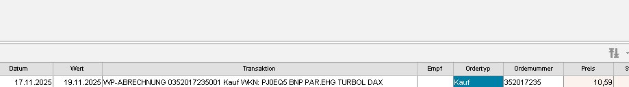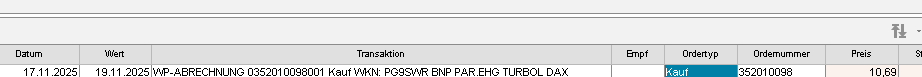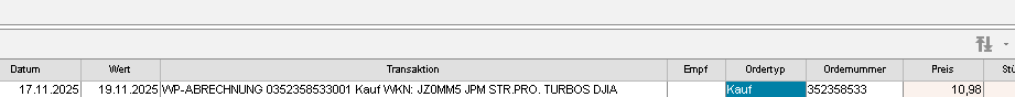 Die Order für den 17.11.2025: