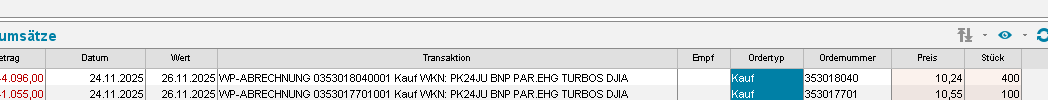 Die Order für den 24.11.2025: