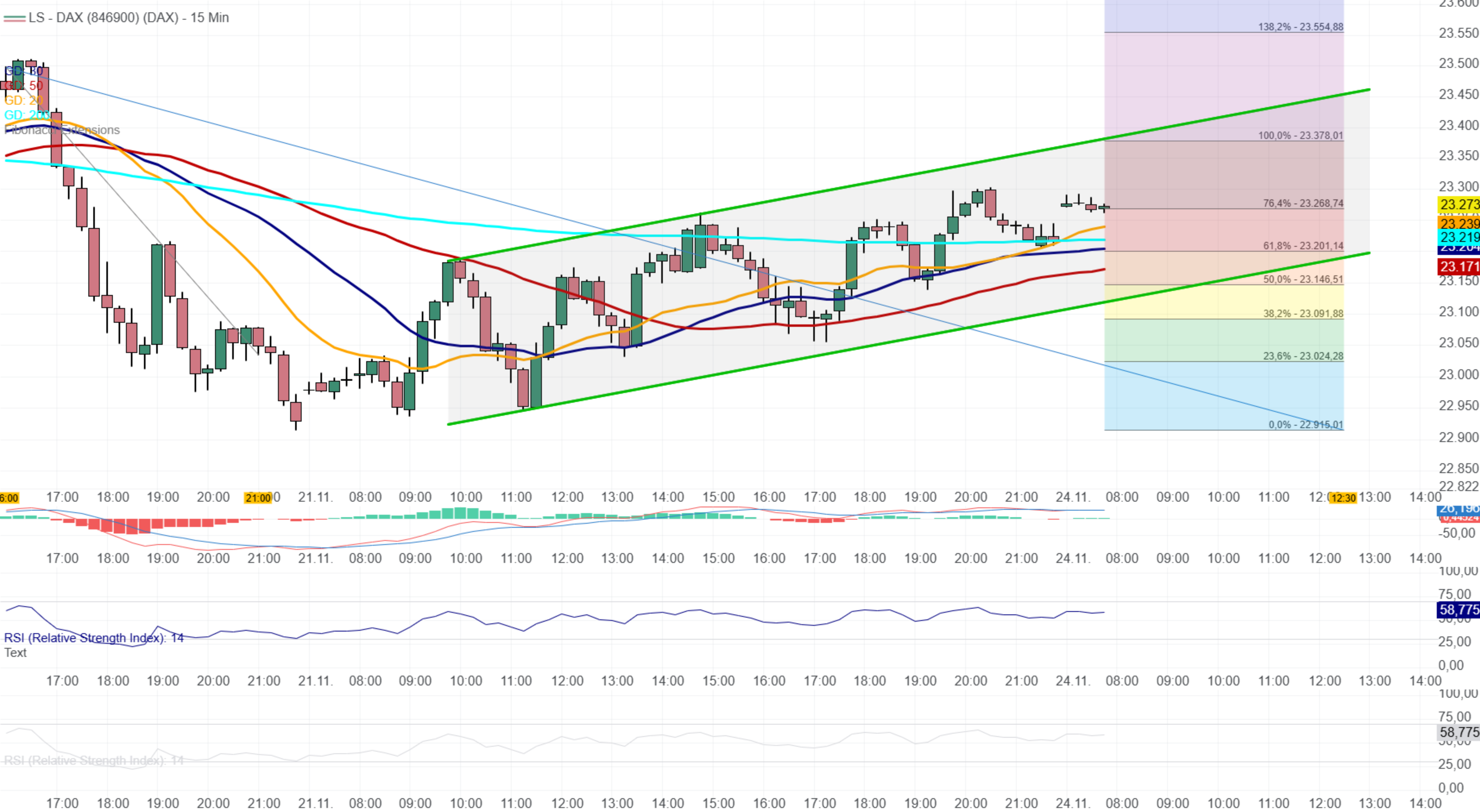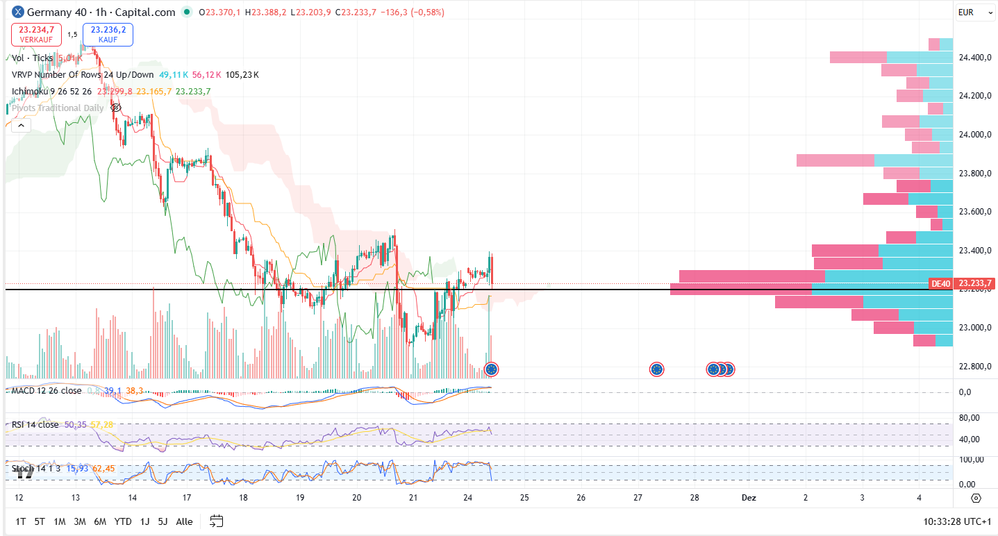 Tendenz: oberhalb von 23300 Erholungschance, unter 23040 abwärts