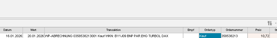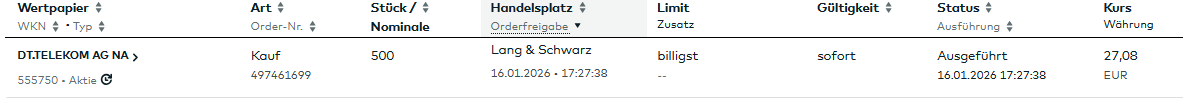 Die Order für den 16.01.2026: