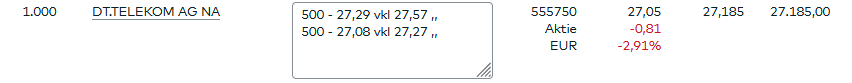 So mein Telekomnachkauf 500 Stück zu 26,98 € weg zu 27,51€