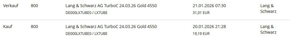 Die Order für den 21.01.2026: