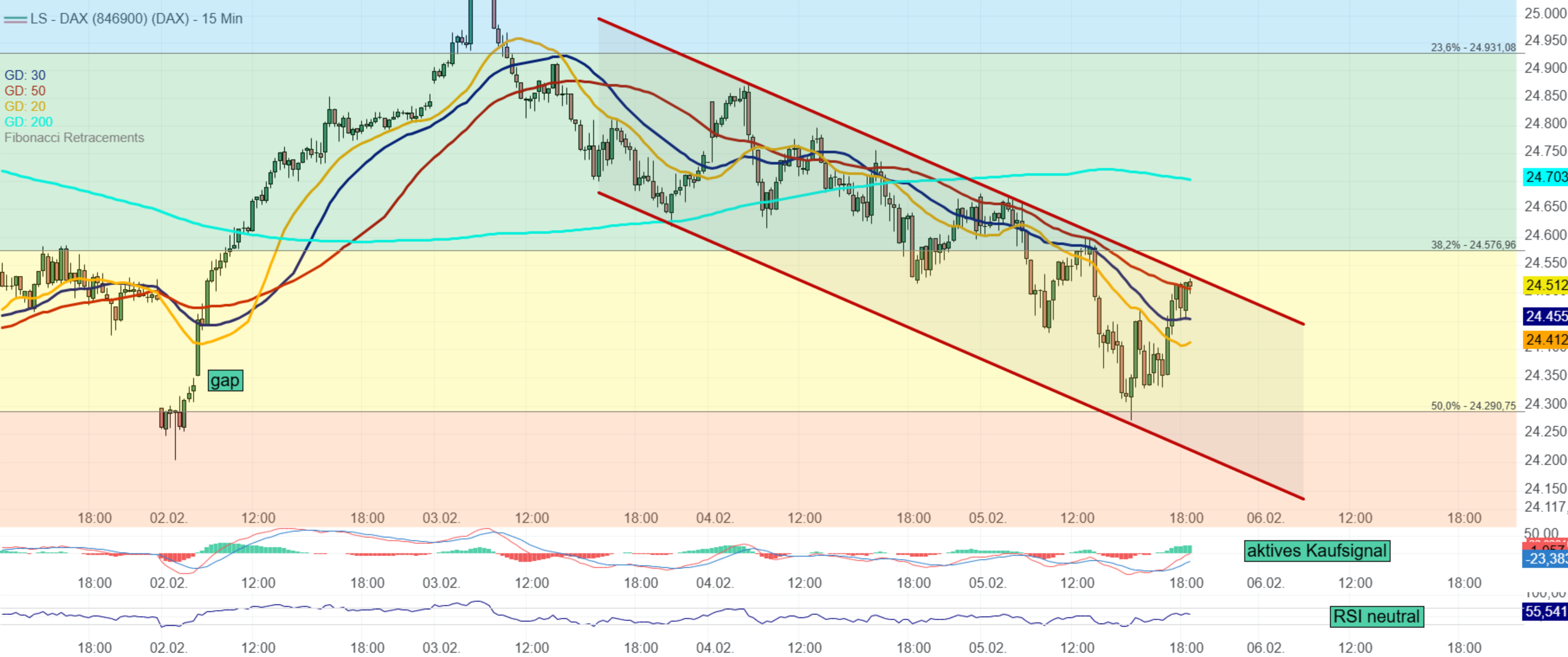 Tendenz: aufwärts oberhalb von 24800, Rücklaufchance unterhalb davon