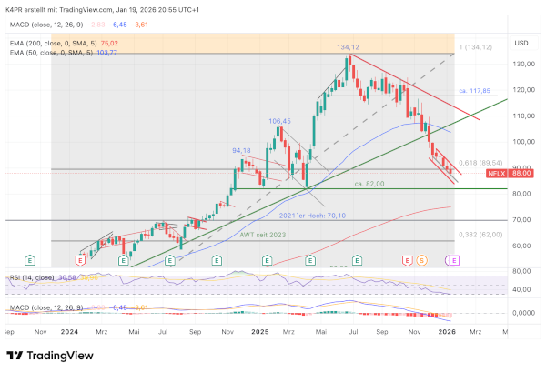 Sollte Netflix positiv überraschen – etwa durch stärkeres Wachstum, bessere Gewinnmargen oder einen optimistischen Ausblick – könnte die Aktie kurzfristig zulegen. Allerdings kämpft der Kurs seit dem vergangenen Sommer mit einem Abwärtstrend, der bisher noch nicht klar beendet wurde.